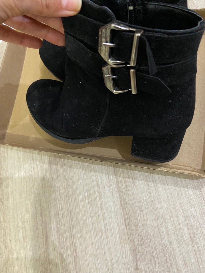 Siyah Süet Tokalı Topuklu Kadın Bot