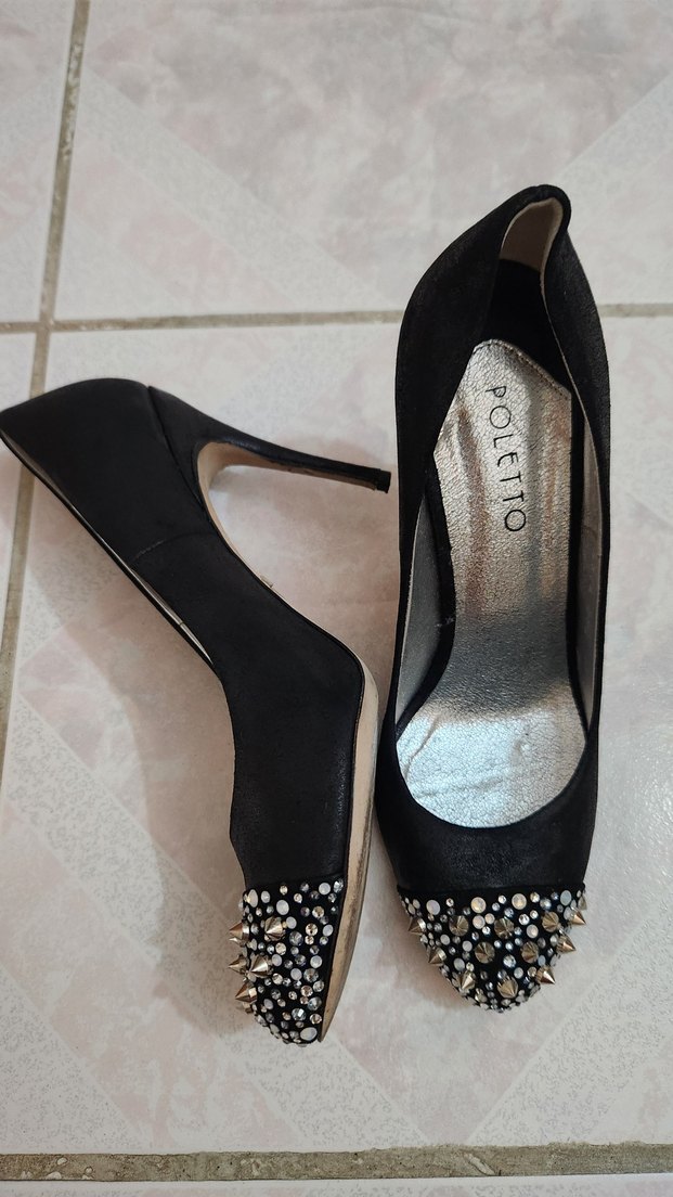 Poletto Hakiki Deri Siyah yüksek topuklu kadın ayakkabı. 39 beden. 1 kez giydim.