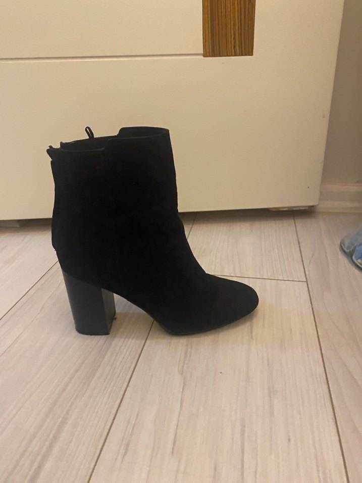 Siyah süet topuklu bot