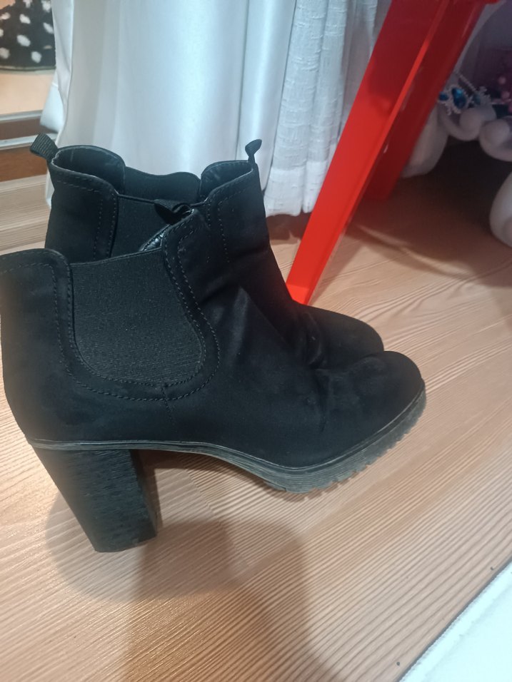 Daichmandan aldim.topugu ayakkabicida yaptirabilirisiniz.uygun koyuyorum Siyah süet malzemeden yapılmış, tokalı ve kalın topuklu kadın botları. Minimalist gotik tarzıyla günlük kullanıma uygundur.