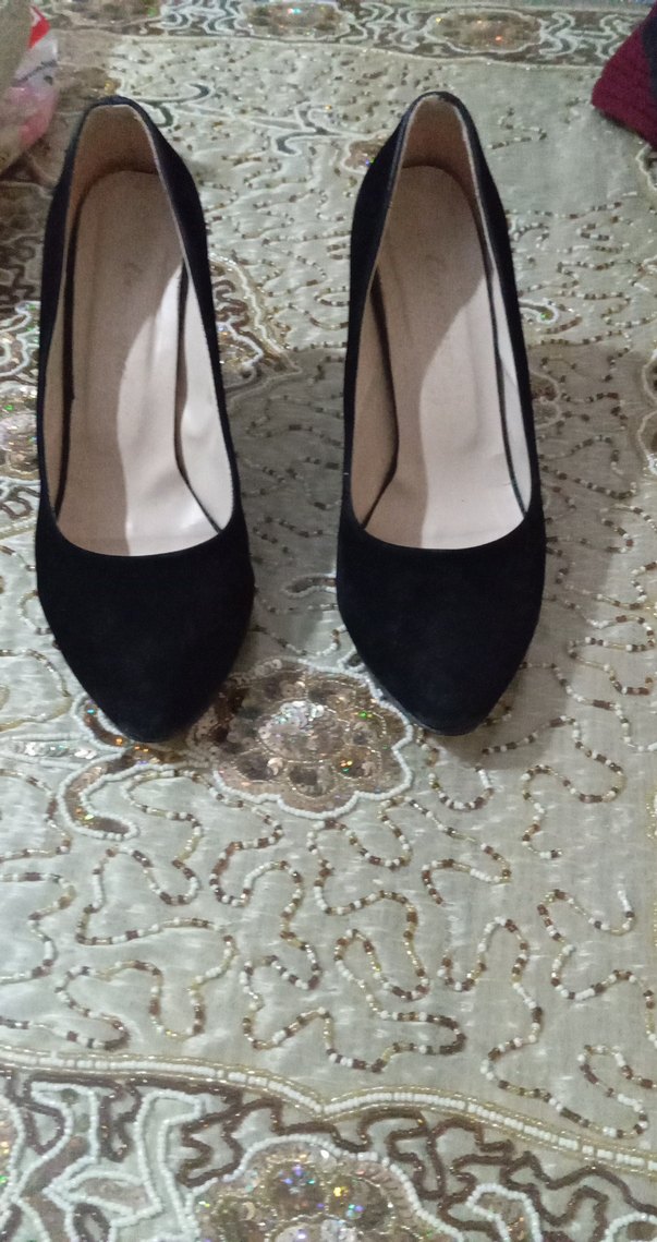 Klasik ve minimalist ofis stiline uygun, tokalı ve hafif yılan derisi desenli siyah süet stiletto.