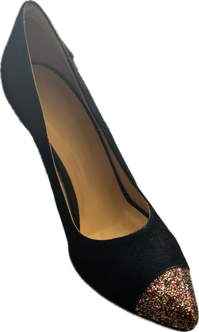 Klasik şıklık için siyah süet stiletto, burun kısmında yılan desenli kürk detaylı, ofis kullanımı için uygun. %100 el yapımı yeni ve etiketli satışını yapıyorum ayak numaranızı verip sipariş etmeniz yeterli