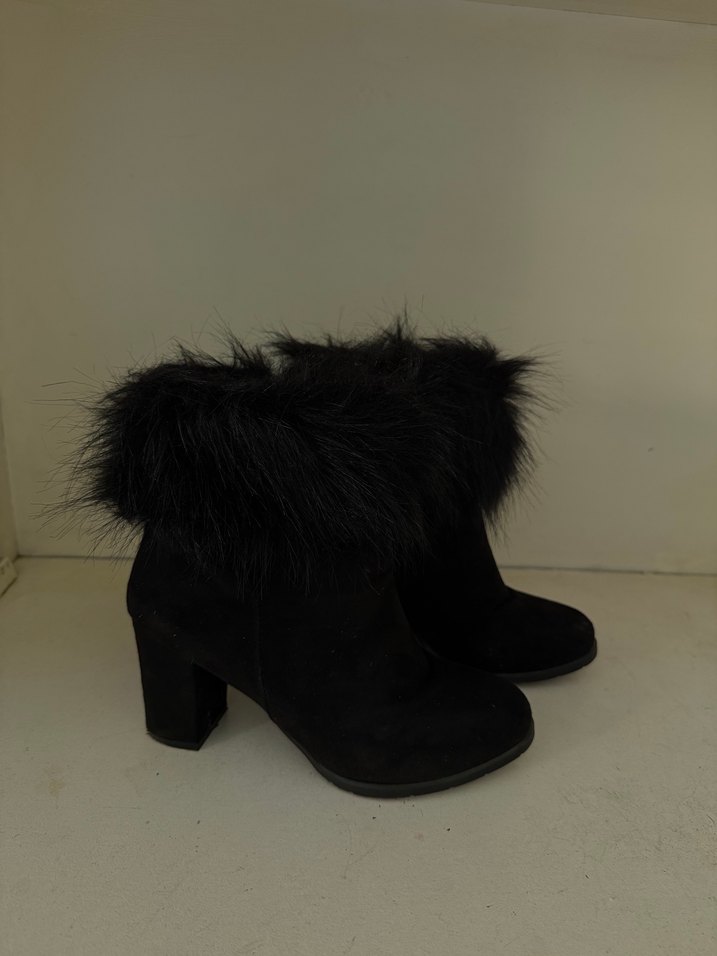 Siyah Süet Topuklu Kürklü Kadın Bot