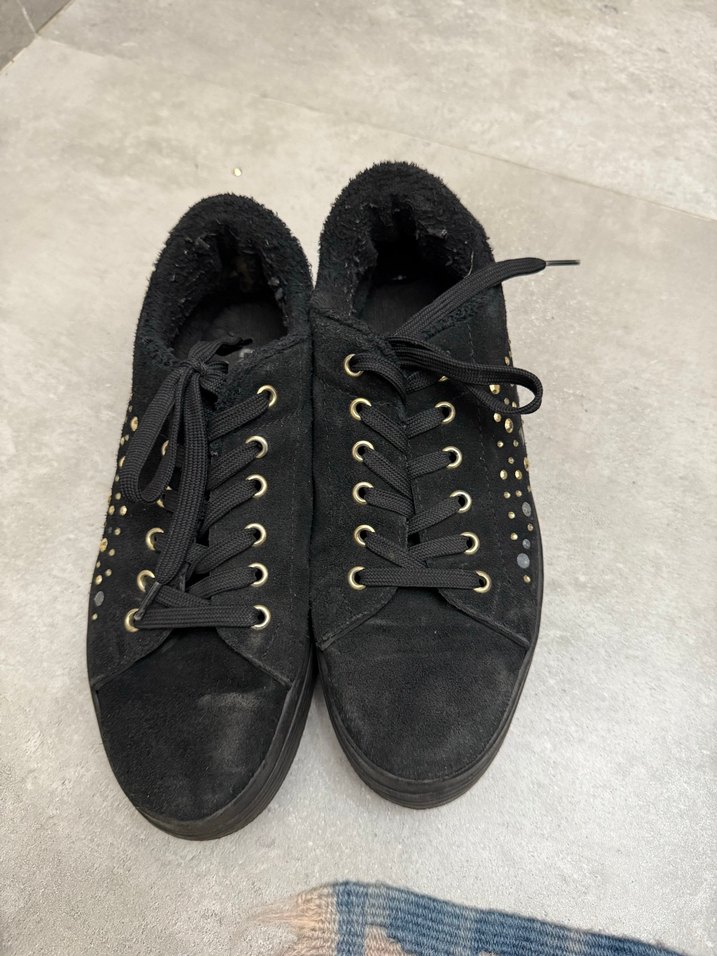 Siyah Süet Tüylü Topuklu Kadın Spor Ayakkabı