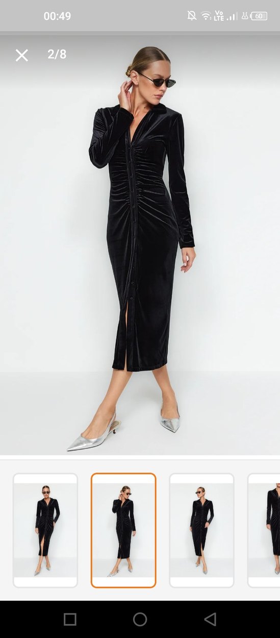 Siyah süet kalem elbise, v yaka ve pile detaylıdır. Uzun boyu ve ince askılı kollarıyla parlak, modern bir görünüm sunar. Esnek170 boy 90 kilo olan bana oldu ✨yeni etiketli hiç giyilmedi.