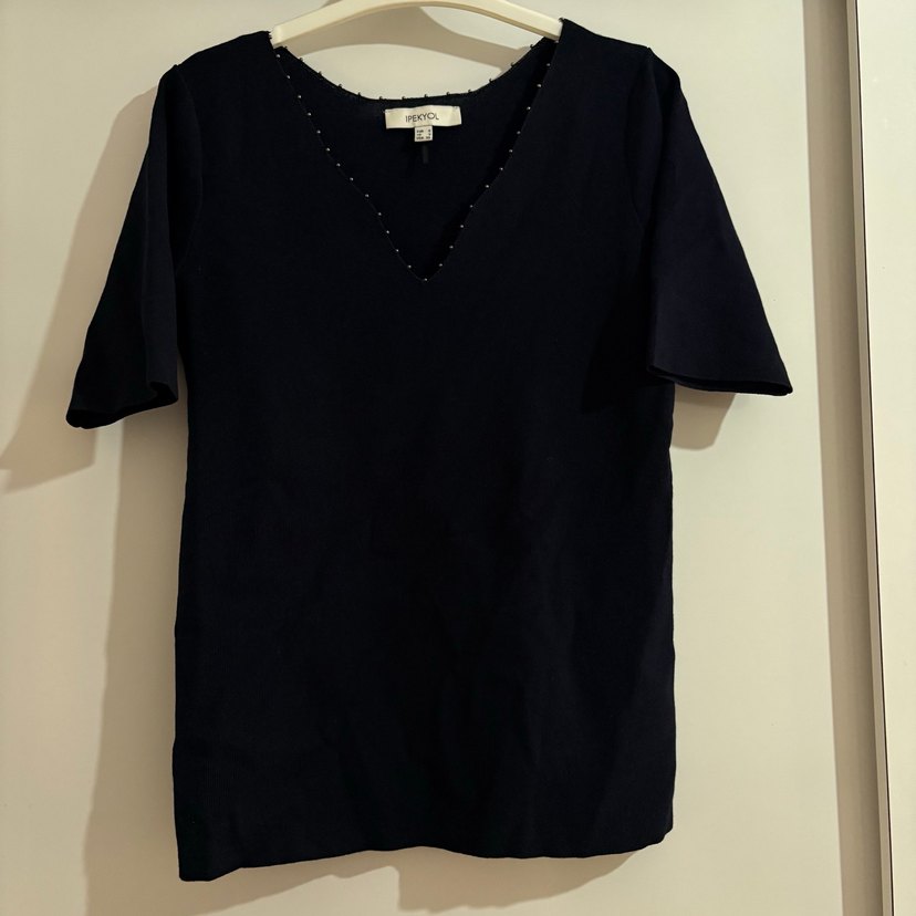 Siyah süet kumaştan, V yakalı ve kısa kollu, rahat kesim kadın bluz, günlük kullanıma uygun şık ve rahat tarz sunar. İpekyol genişlik 43 uzunluk 62