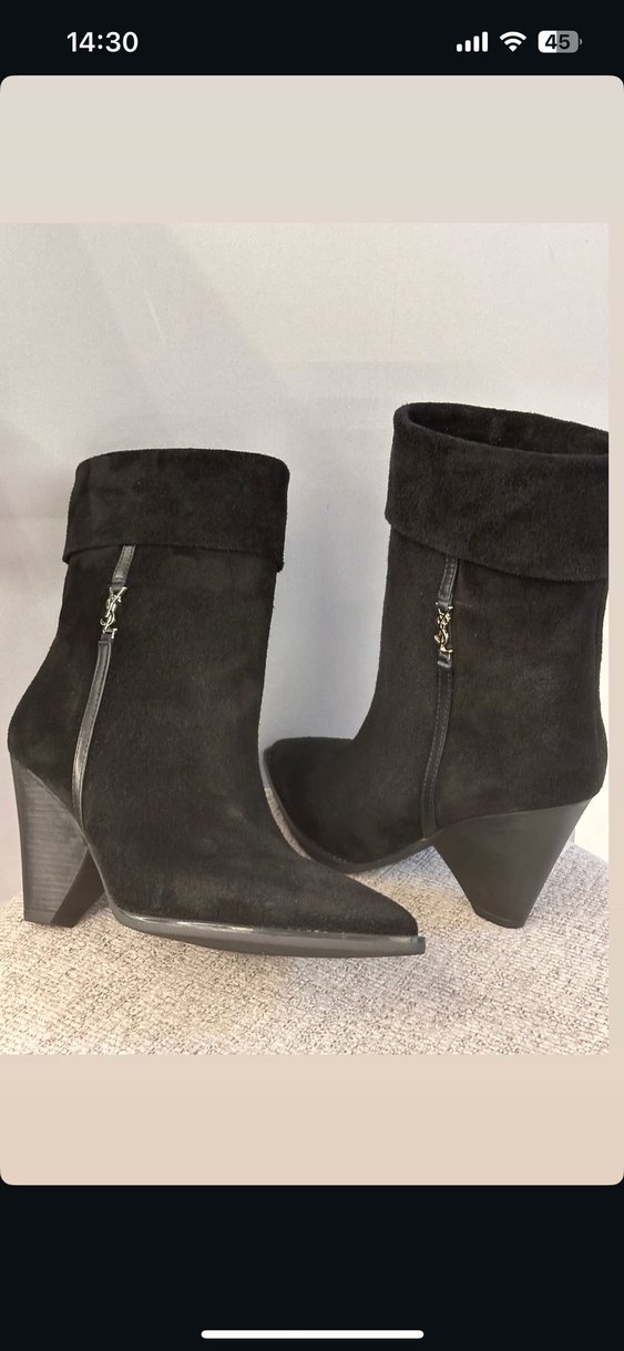 Siyah süet yılan desenli, tokalı ve blok topuklu kadın botları. Günlük kullanıma uygun, cesur ve rahat tasarım.