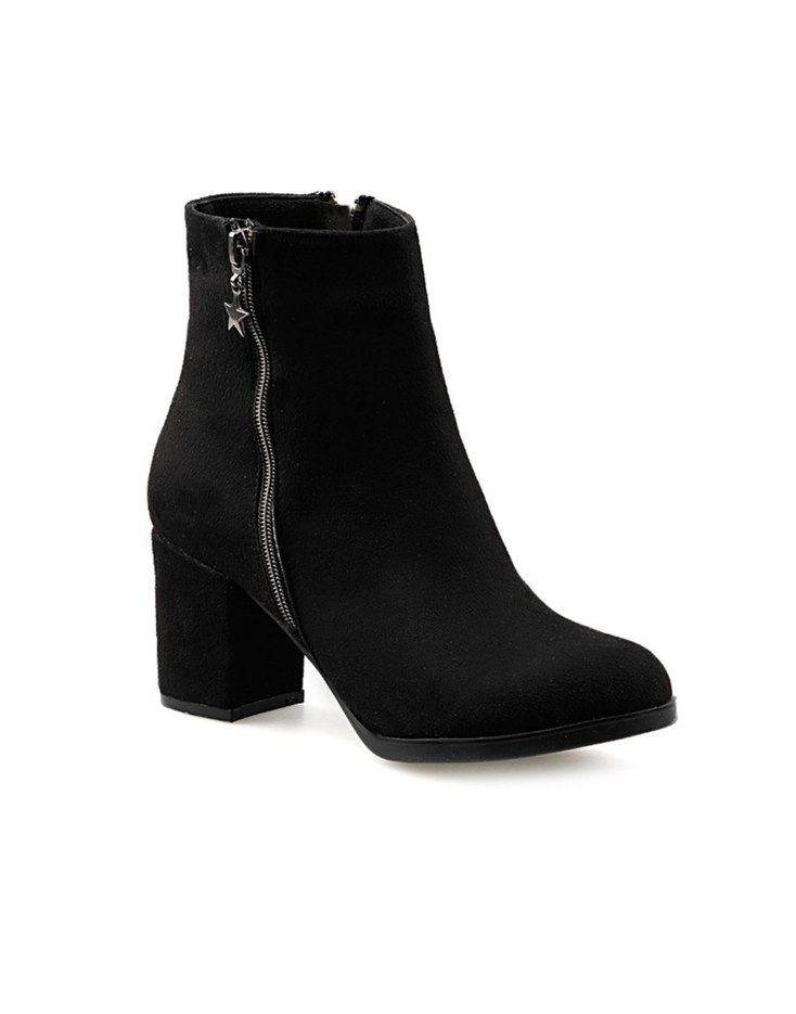 Siyah Süet Yıldız Tokalı Blok Topuklu Bot