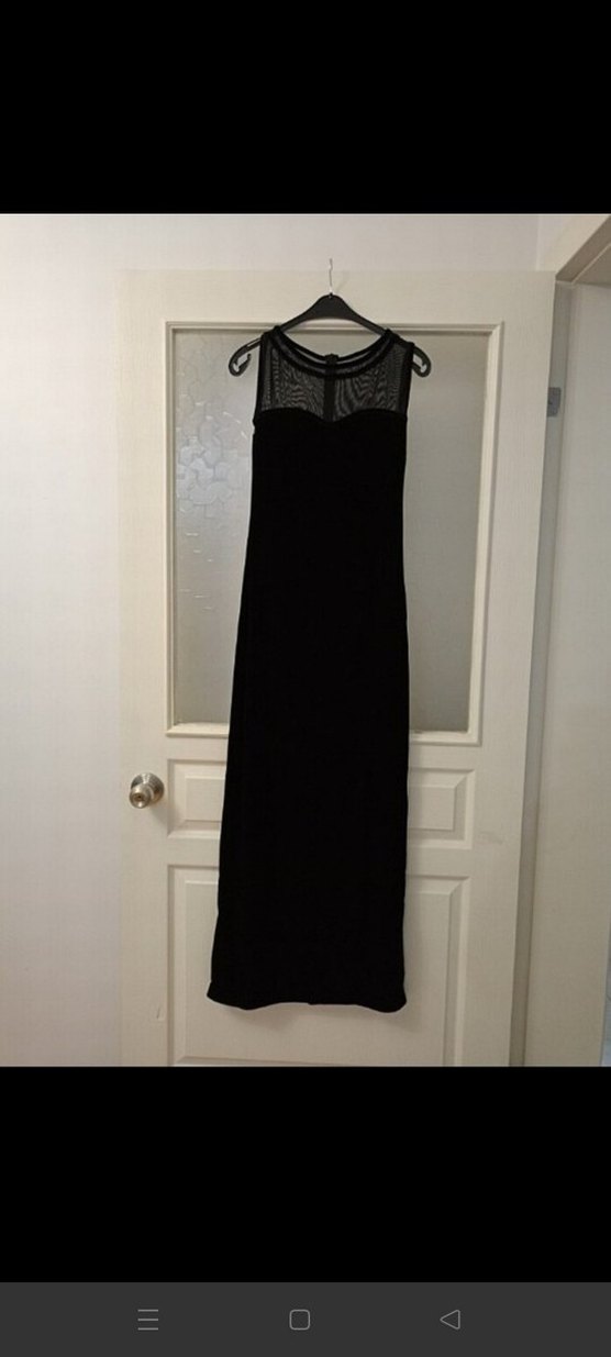 Siyah süet kumaştan, yüksek yakalı, kolsuz, drapeli ve vücuda oturan uzun elbisedir. Romantik akşamlar için uygundur. kadife