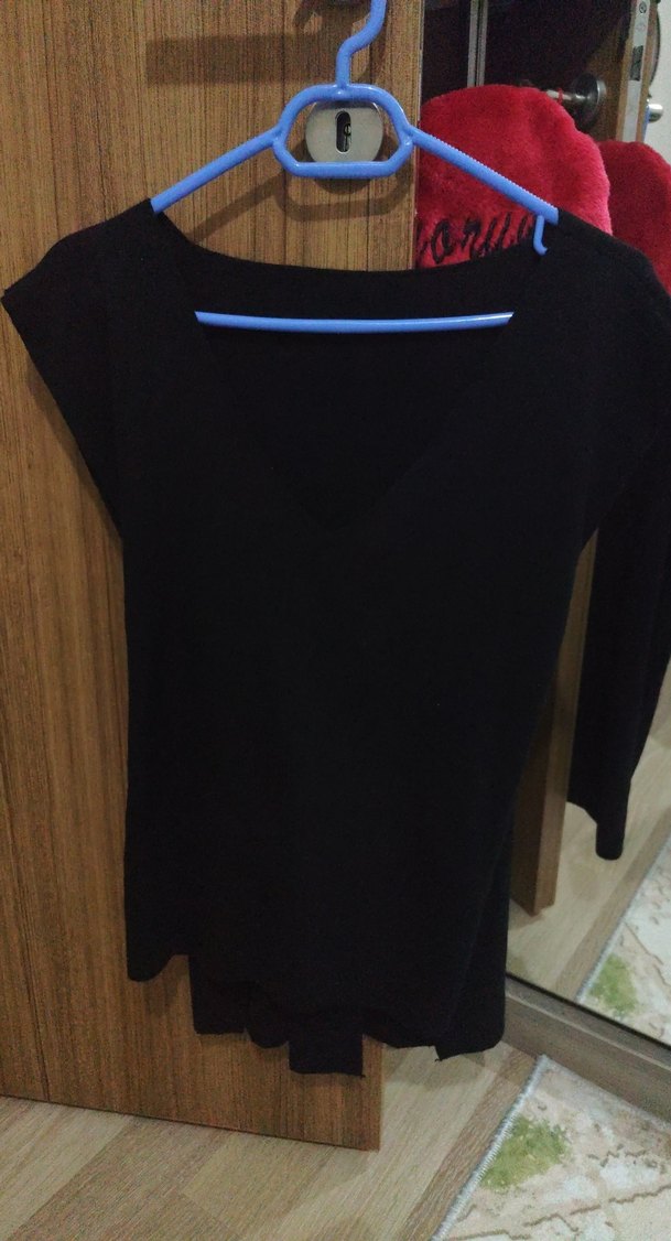 Siyah V yakalı. Minimalist tarzıyla günlük kullanıma uygundur. m/l uyumludur