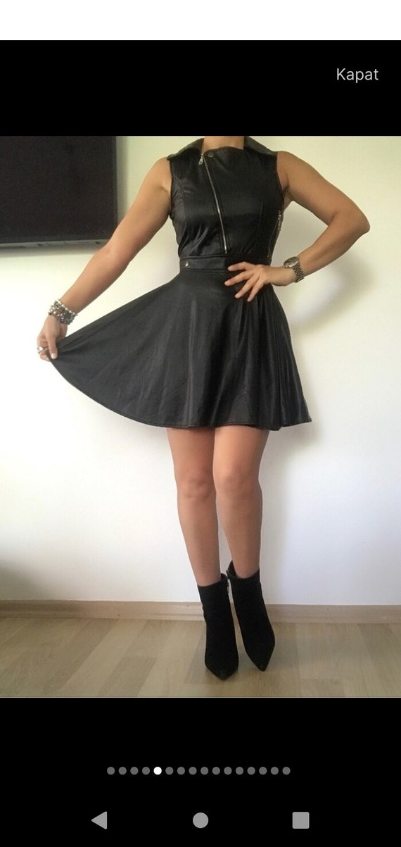 Siyah Suni Deri Elbise