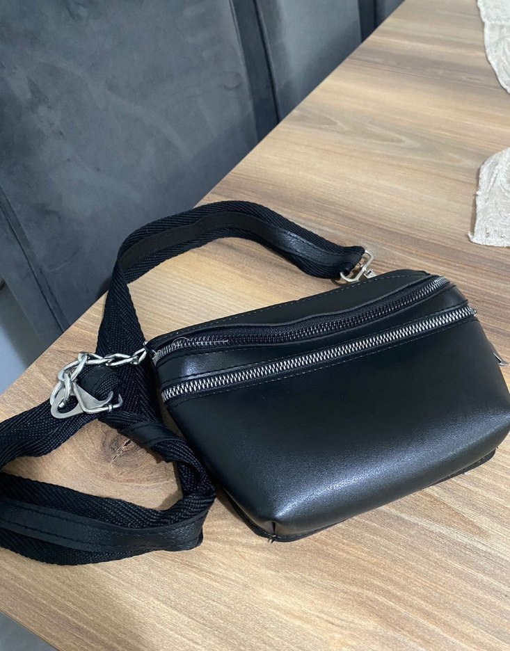 Siyah Suni Deri Kadın Bel Çantası