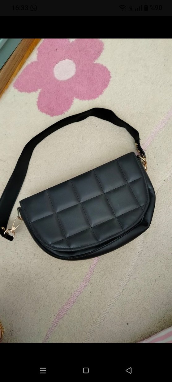 Kapitone desenli siyah deri kadın çanta. Günlük kullanıma elverişli. Baget model çanta