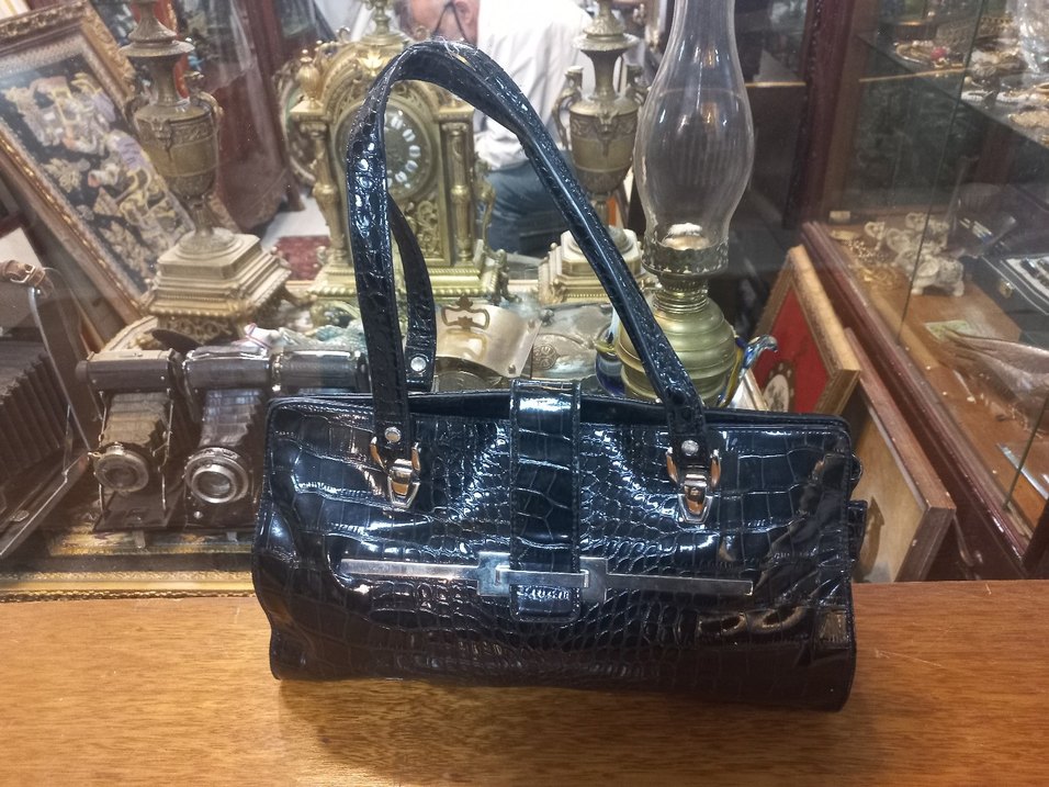 Siyah suni Deri Krokodil Desenli Tokalı Kadın Çanta
