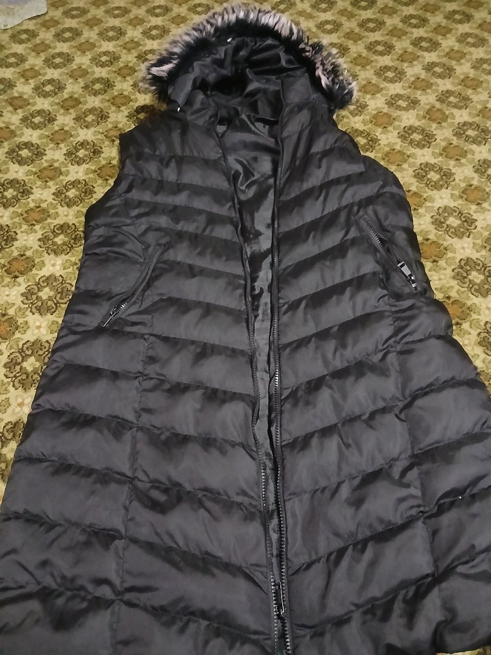 Siyah renkte, suni kürk detaylı kapüşonlu uzun yelek. Sade, fitted kesim, notched lapel yaka ve kolsuz tasarım ile günlük kullanıma uygun. fermuarı bozuk cebi yırtık dikilebilir.