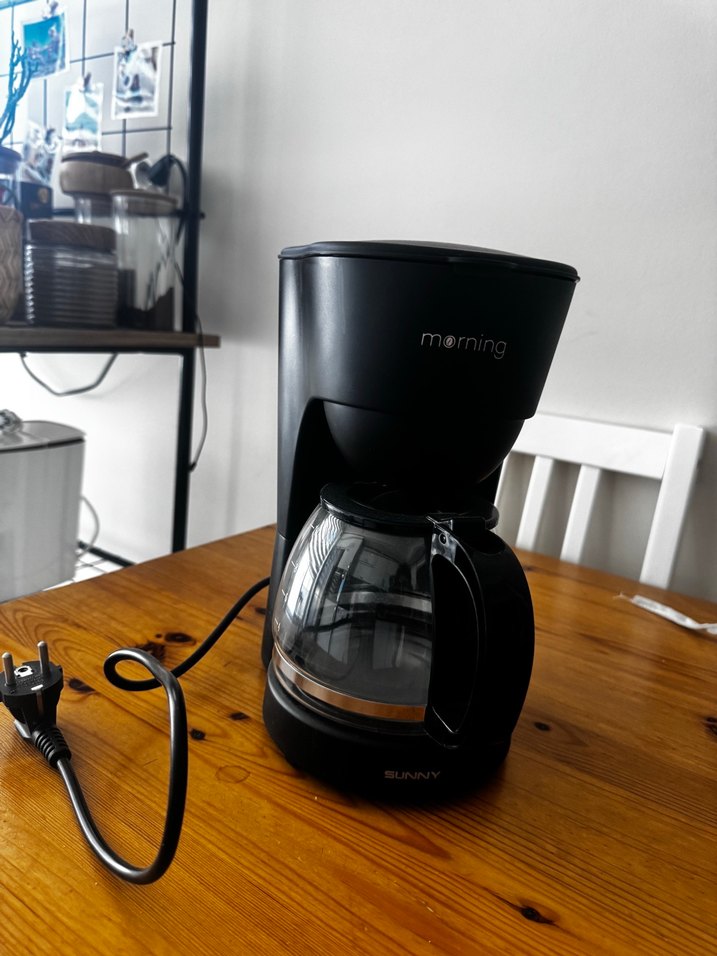 Klasik damlatma tasarımlı, cam sürahili ve basit açma/kapama düğmeli siyah Sunny kahve makinesi. ☕