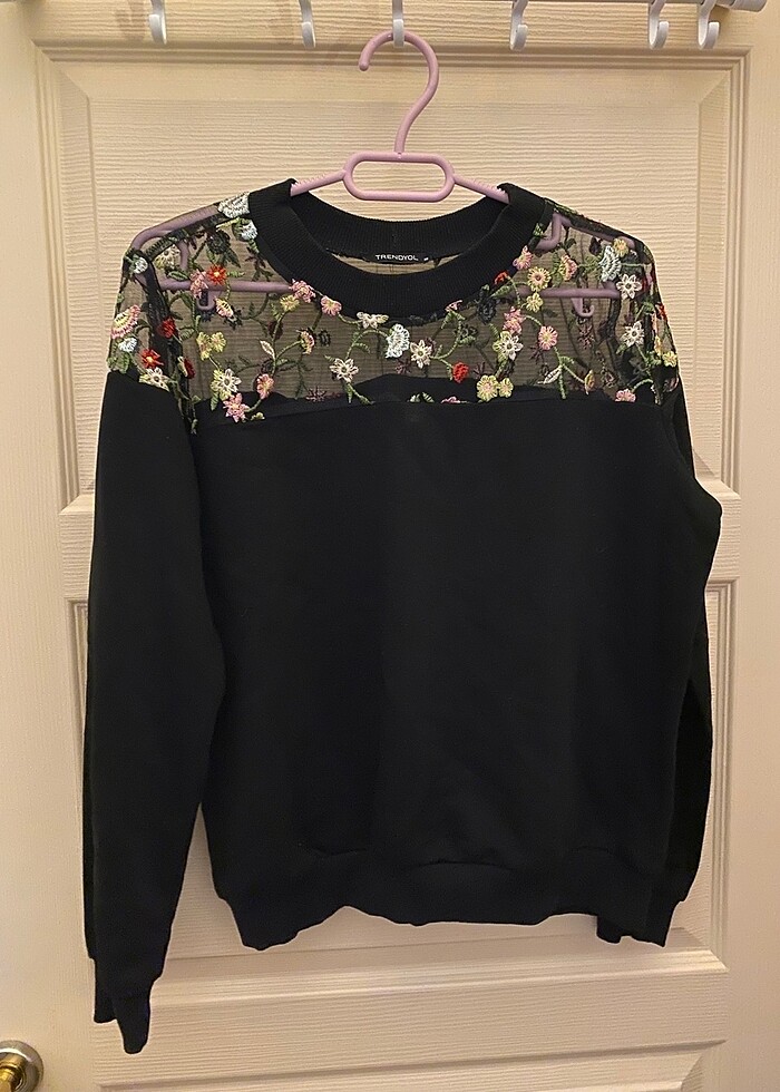 Üstü transparan tül işlemeli, sweatshirt kumaşı. 38 beden. Trendyolmilla marka