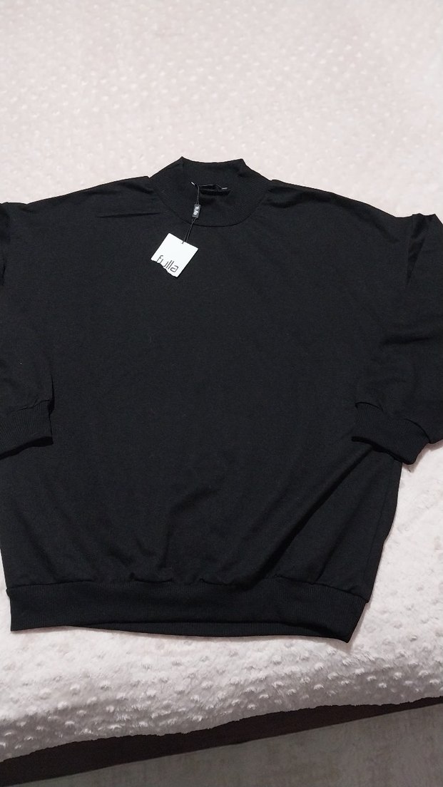 Siyah, yarım boğazlı, uzun kollu ve yumuşak kumaştan unisex sweatshirt. Günlük rahat sokak stiline uygundur. L ve M beden içinde uygun çok geniş bir kalıbı yok