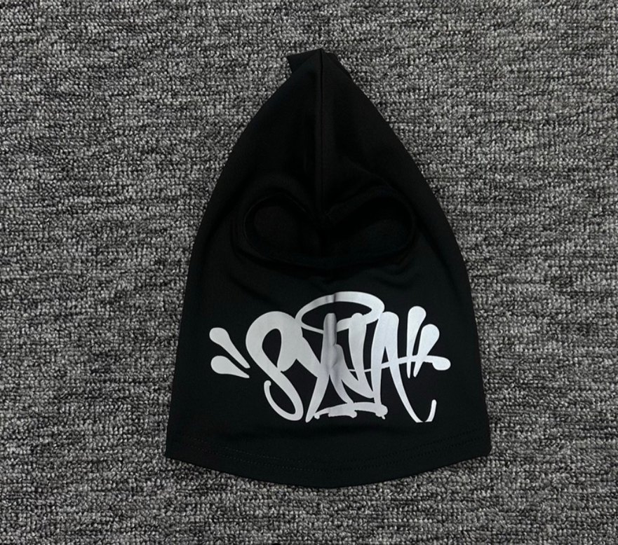 Siyah erkek beresi, gri baskılı grafiti deseniyle rock punk havası ve sokak stilini yansıtıyor. Syna Maske