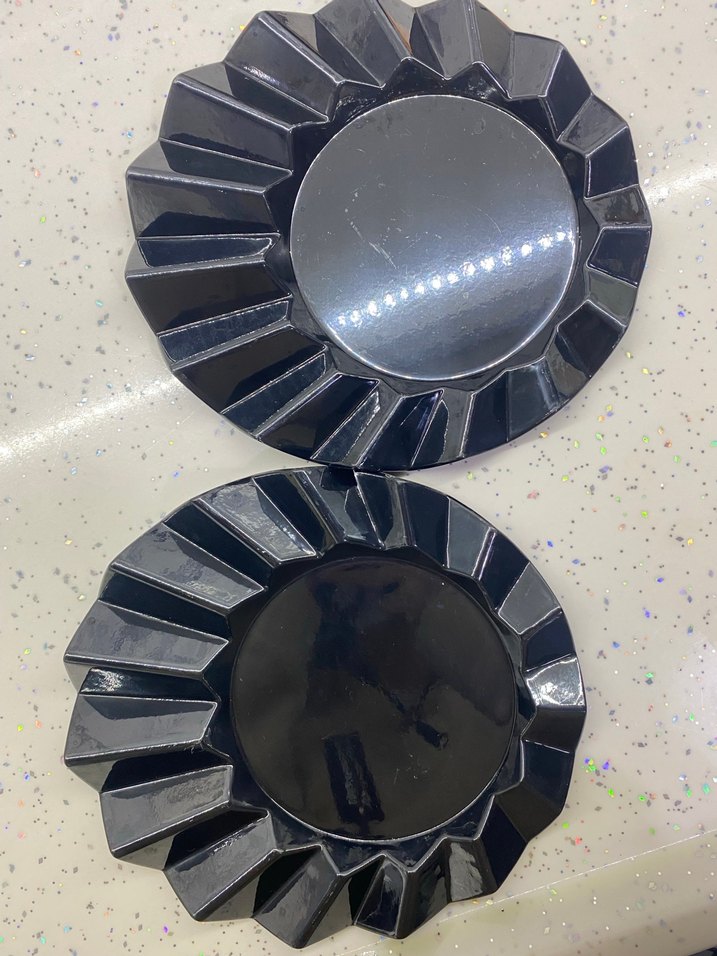 Kenarları dilimli, koyu siyah renkte iki adet tabak