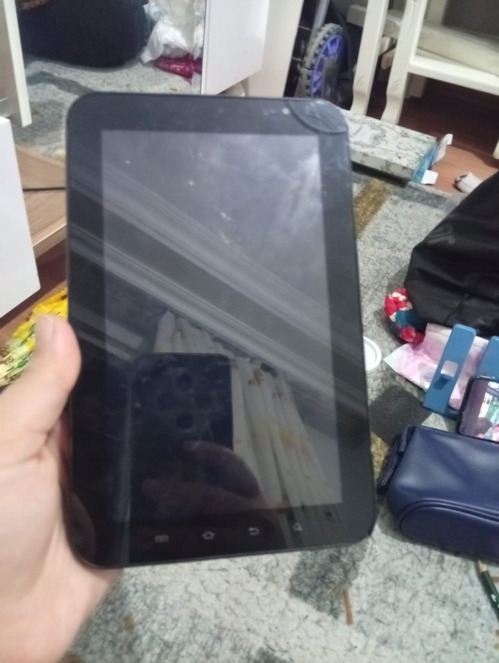 Dokunmatik ekran ve ön kameraya sahip siyah tablet, günlük kullanım için uygundur.
