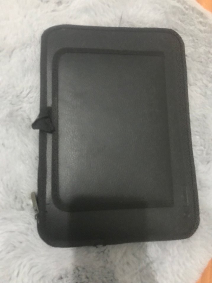 Siyah tablet kılıfı, güvenli saklama ve koruma için fermuarlı kapamaya sahiptir.