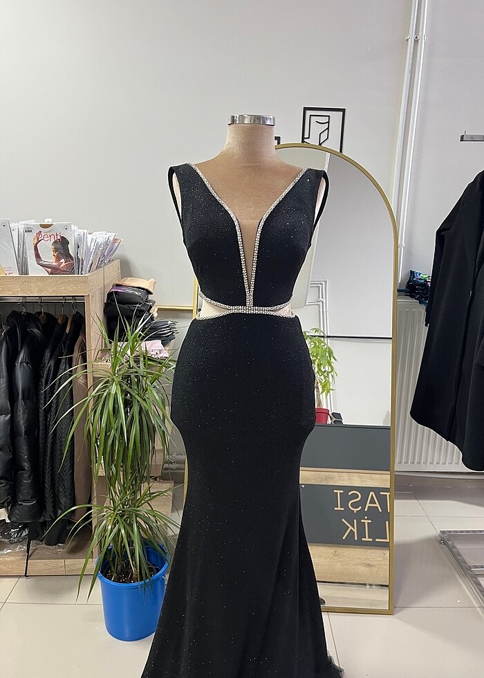 Siyah taş detay abiye