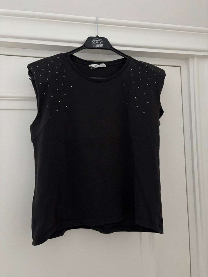 Siyah Taş Detaylı Kolsuz Mini Tişört mango