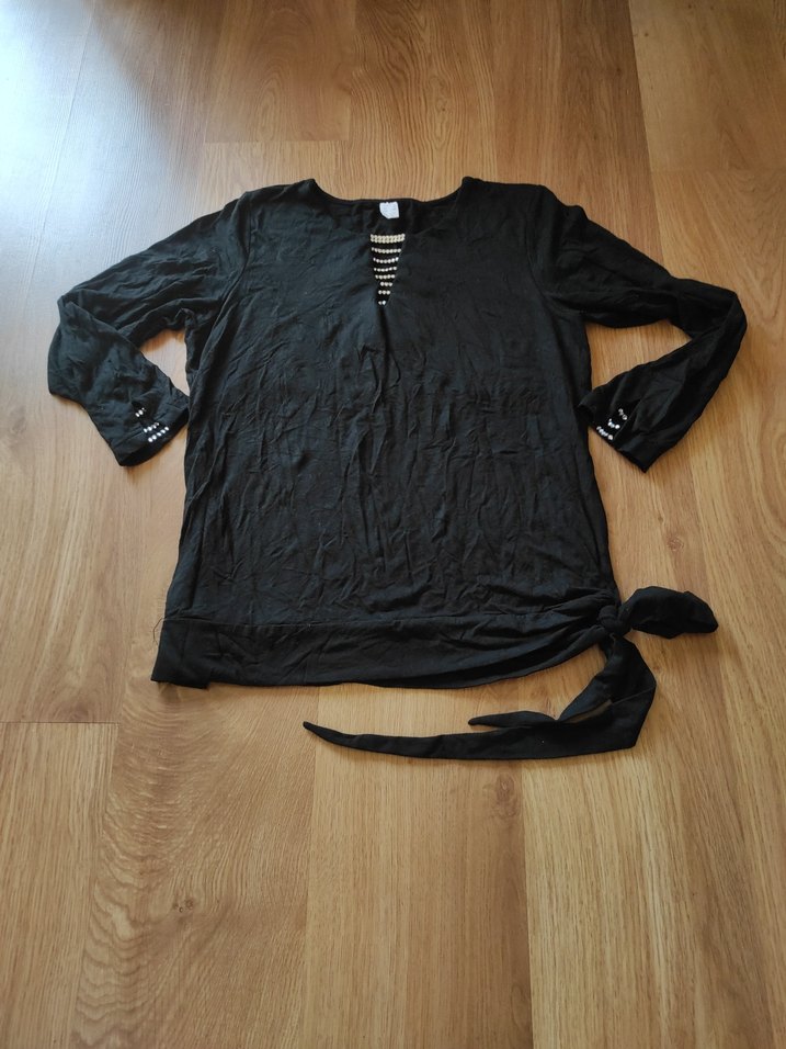 Siyah taş detaylı penye bluz