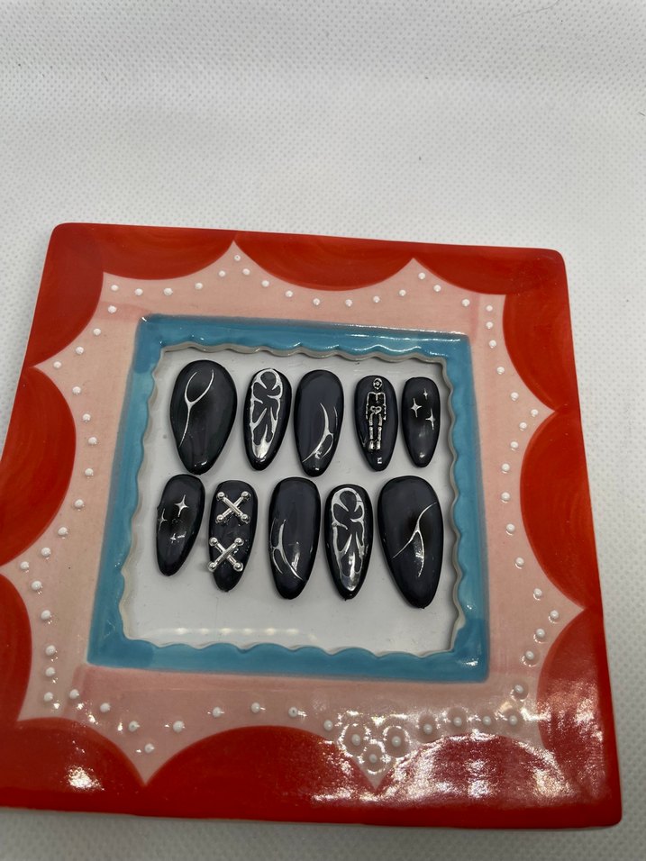 Her bir set özenle hazırlanmış, yalnızca 1 adet stokla sınırlıdır. Tırnaklar kalıcı oje ile uygulanmış, yüksek kaliteli malzemeler kullanılmıştır. Paket İçeriği: • 1 set takma tırnak • Takma tırnak uygulama kiti • Küçük bir sürpriz hediye Siparişiniz özenle paketlenir ve en kısa sürede kargoya verilir. Güle güle ve keyifle kullanmanızı dilerim!