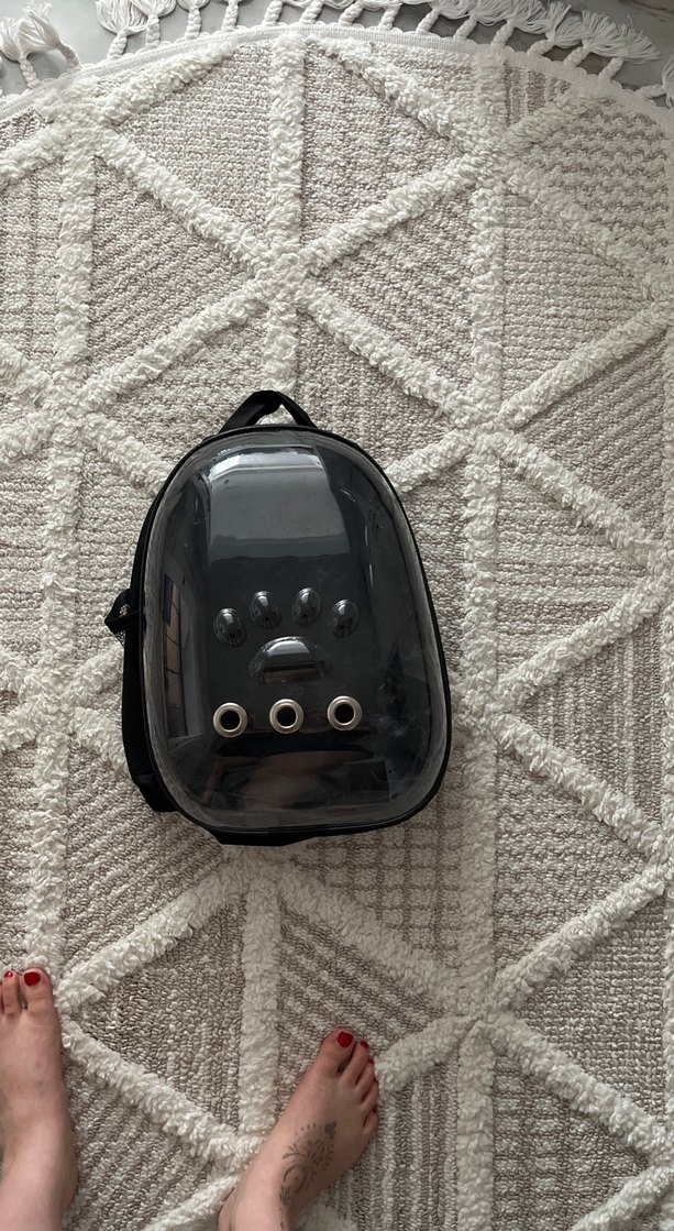 2 kez kullanıldı Şeffaf ön panelde patili desen ve havalandırma delikleri bulunan siyah taşıma çantası