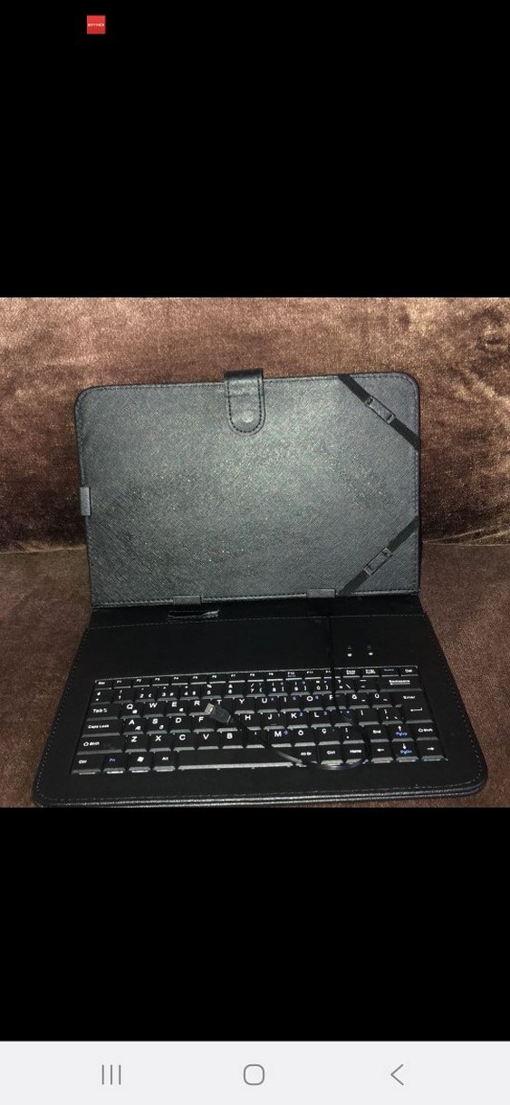 Tablet için entegre klavyeli siyah taşınabilir kılıf, koruma sağlar ve yazmayı kolaylaştırır. Kompakt ve kullanışlıdır. ⌨️