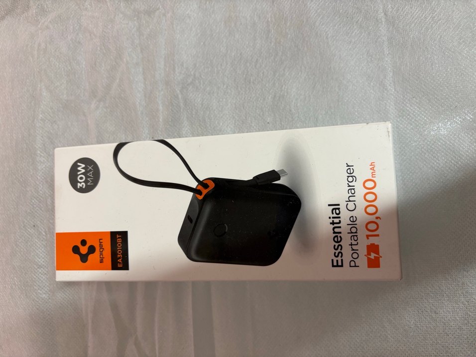 Kompakt siyah taşınabilir şarj cihazı, kullanımı kolay yerleşik kabloya sahip. Hareket halindeyken cihazlarınızı şarj etmek için uygundur.