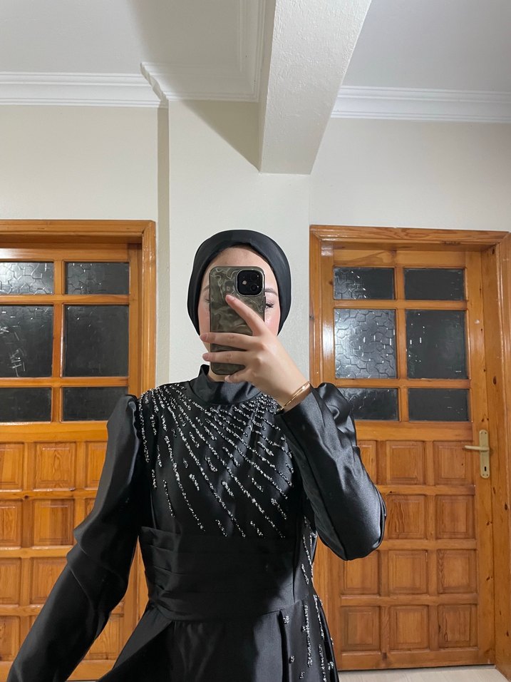 Siyah taşlı abiye şal dahil