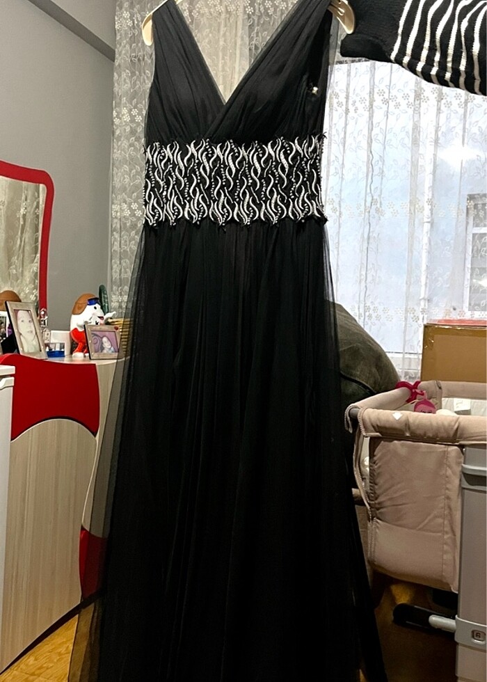 siyah taşlı abiye