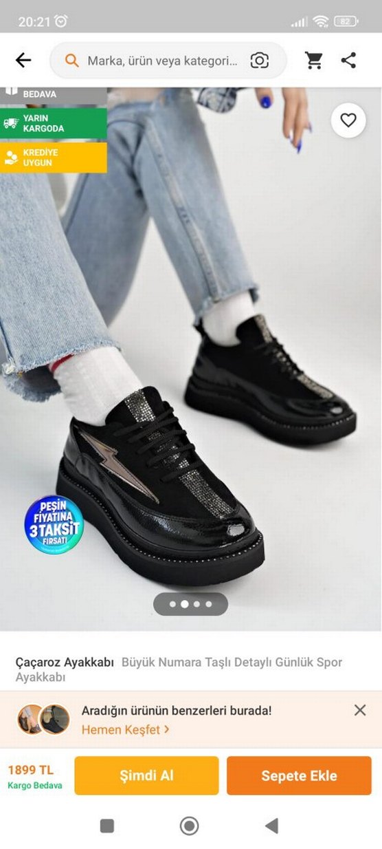 Büyük numara taşlı detaylı günlük spor kadın ayakkabı (42 numara)