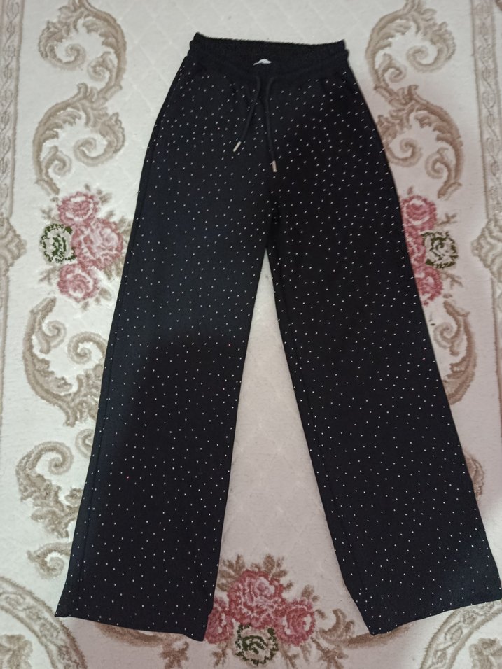 Siyah, uzun kesim, eşofman payet detaylı ve bağcıklı bel ile günlük rahat kullanıma uygun. ✨
