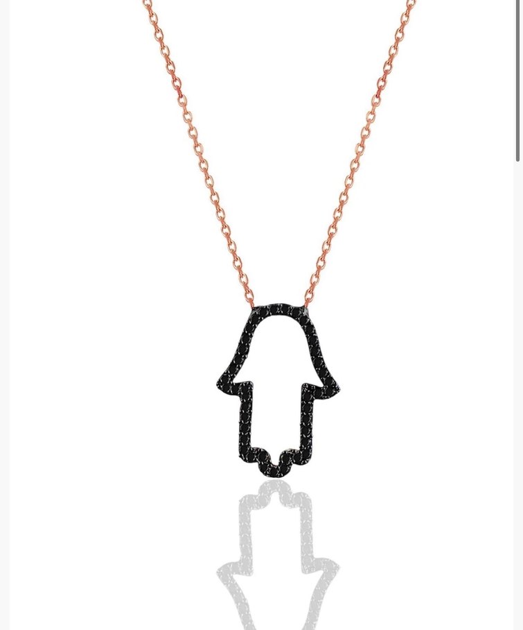 Siyah taşlı fatma ana eli kolye 925 ayar