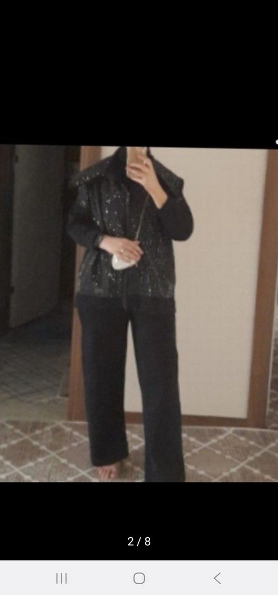 Siyah midi uzunlukta, notlu yaka ve uzun kollu kadın takımı. Rahat kesimi ve desensiz tasarımıyla günlük şıklık sunar. 40....42 bedene kadar rahat olur