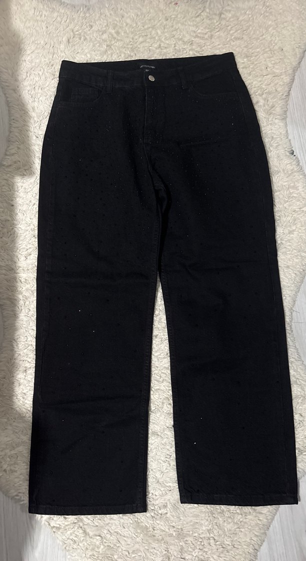 Siyah taşlı pantolonları, normal boyda ve regular fit kesimde, siyah renkte denim kumaştan üretilmiştir. Günlük kullanım için uygun, rahat ve şık bir sokak tarzı sunar.