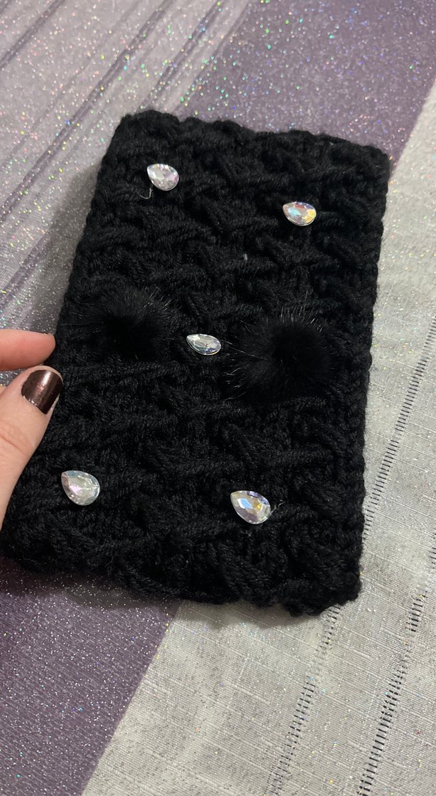 Nakışlı ve kristal detaylı siyah örgü kadın avant-garde ve trend görünüme uygundur.