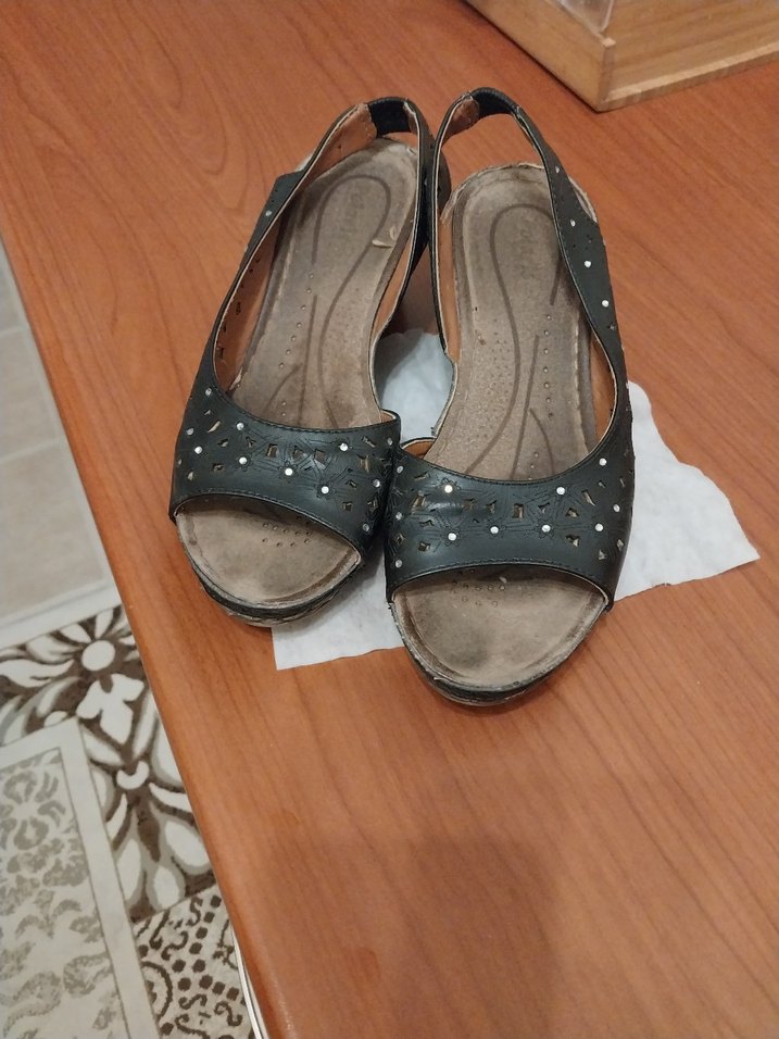 Dolgu topuklu siyah sandalet az kullanıldı.