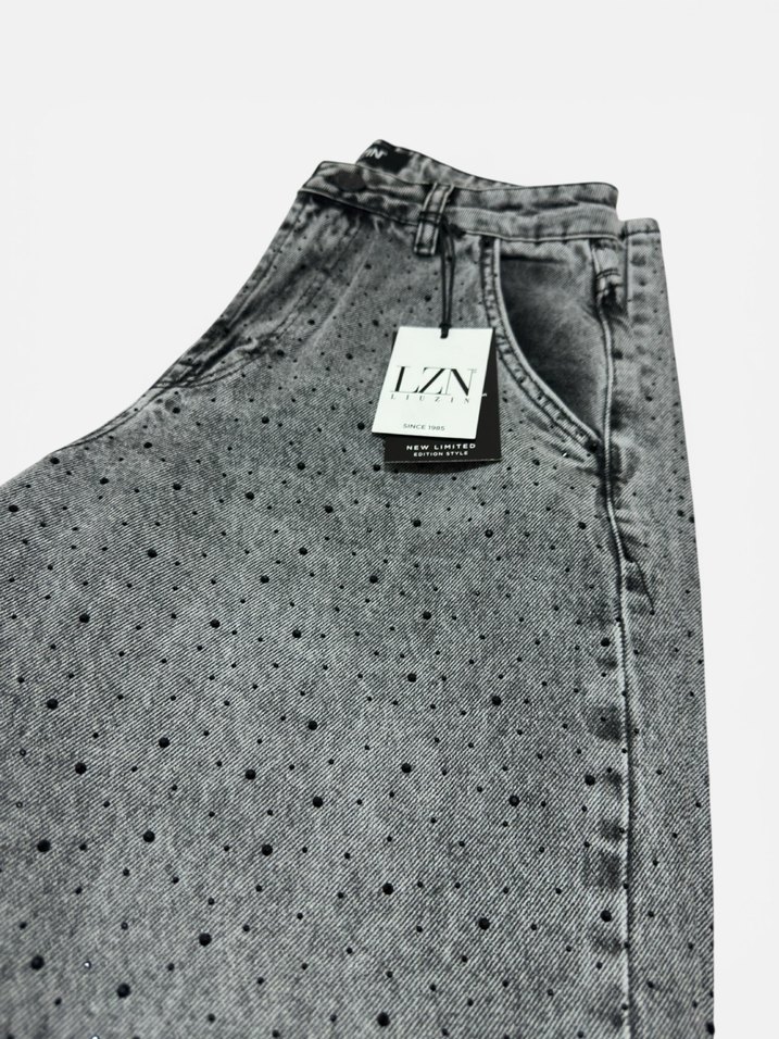 Sıfır kullanılmamıştır.Önü ve arkası Siyah taşlı açık gri bayan skater kot pantolon. 28 beden Bel 38 cm uzunluk 105 cm paça genişliği 21