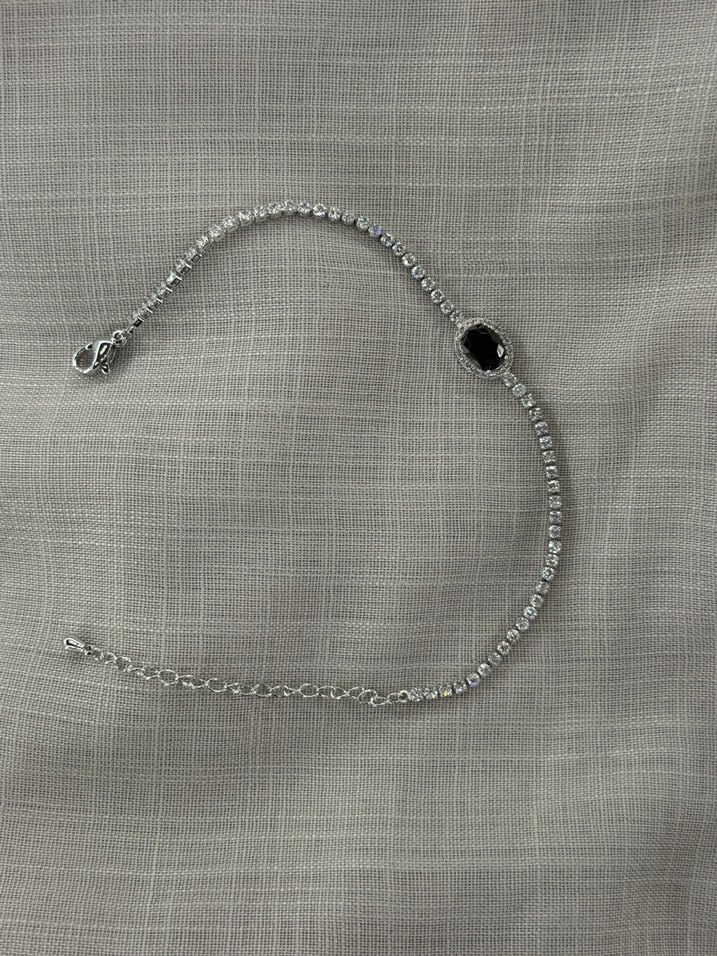 zincir detaylı ve ortasında siyah taş bulunan su yolu minimalist siyah kadın bileklik.