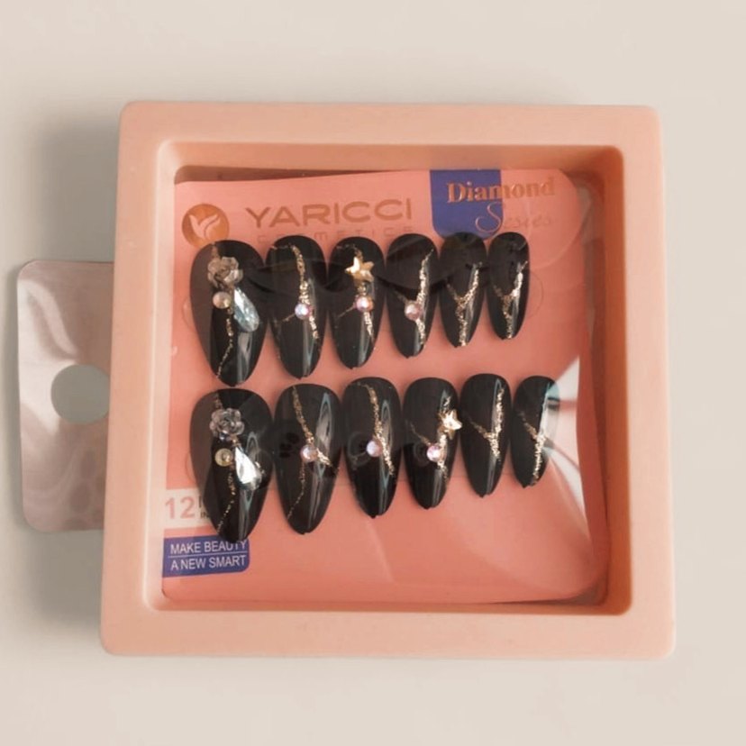 Siyah Taşlı Takma Tırnak