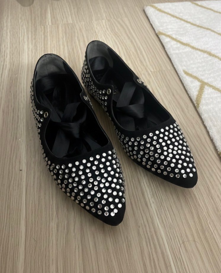 Siyah taşlı tokalı blok topuklu kadın babetler, romantik akşamlar için ideal. Gotik ve Parisli tarzını yansıtır. ✨