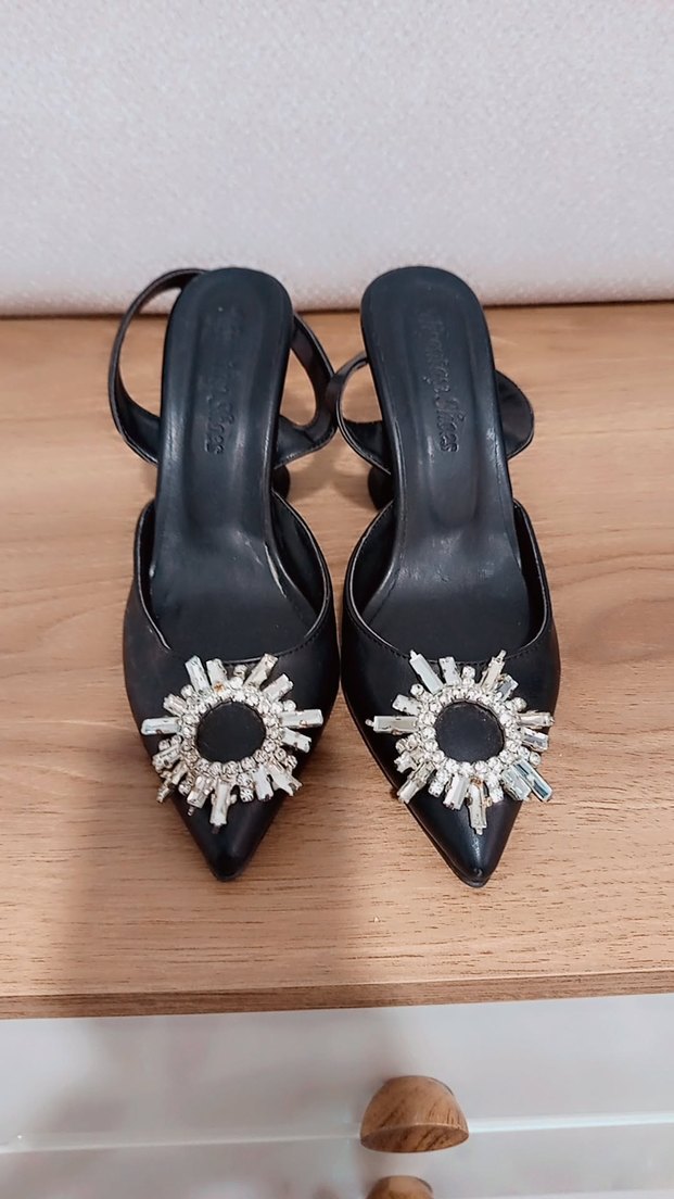 siyah taşlı topuklu ayakkabı
