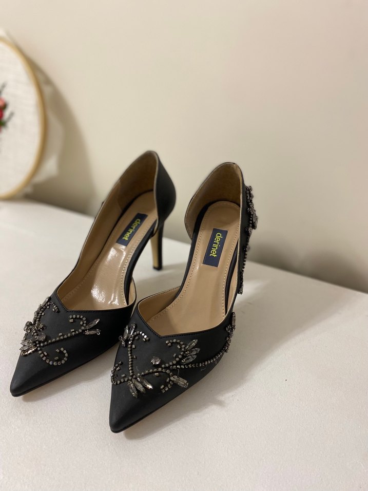 Siyah taşlı Yüksek Topuklu Kadın Ayakkabı
