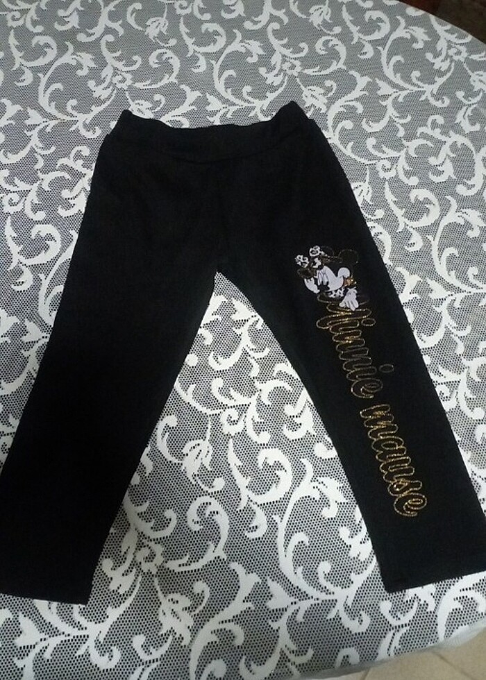 Minnie mause resimli ve simli yazılı,kalın likralı penye siyah tayt.7 yaş kız çocukları için