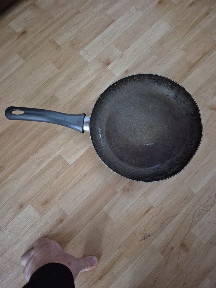 Siyah teflon kaplama tava, rahat tutma sapı ile çeşitli yemek pişirme ihtiyaçlarına uygun.